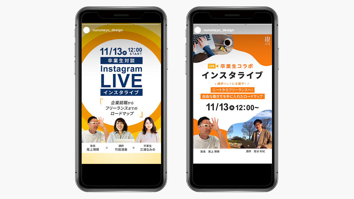 Instagramのストーリー画面に掲載する、インスタライブ告知画像